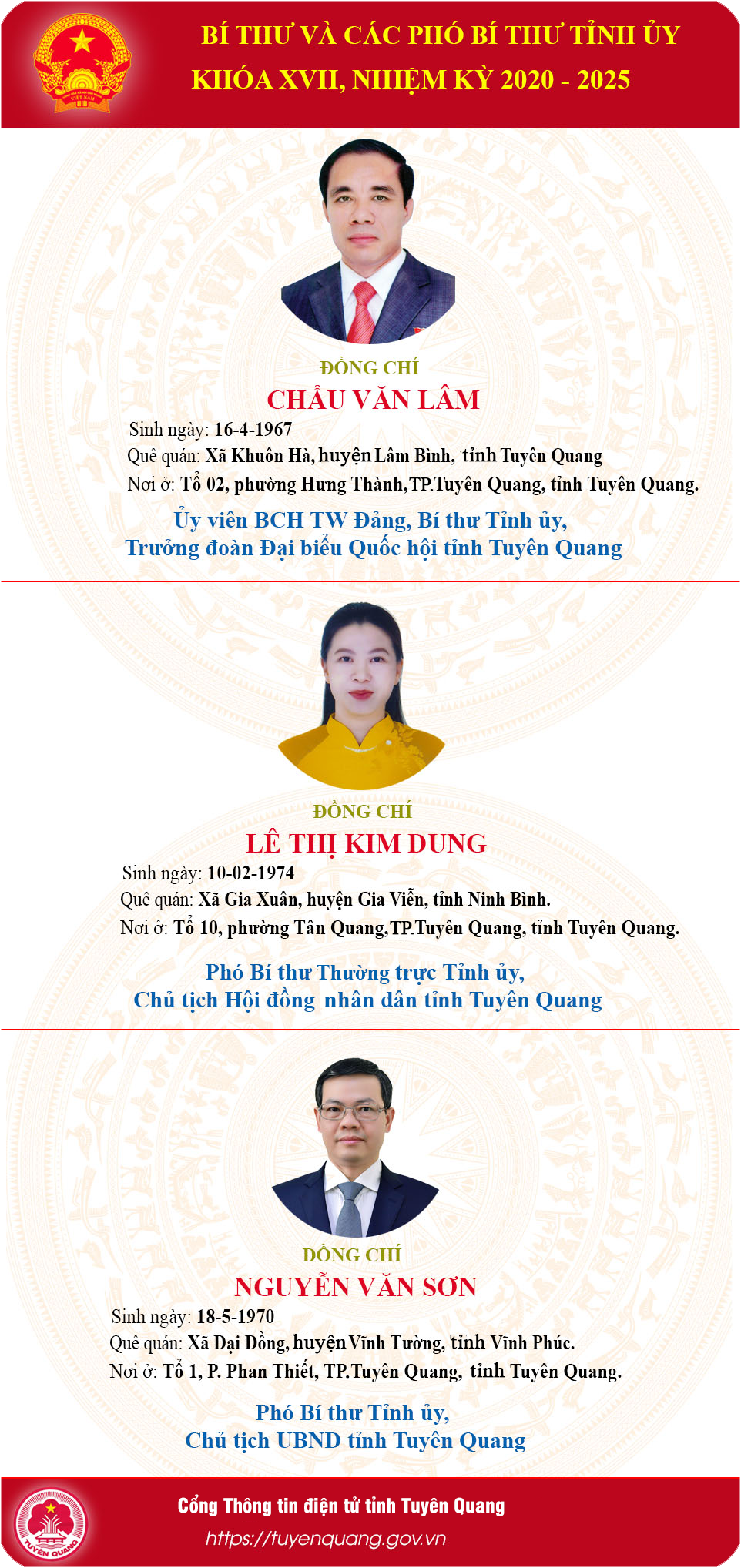 Thường trực Tỉnh ủy Tuyên Quang khóa XVII, Nhiệm kỳ 2020 - 2025
