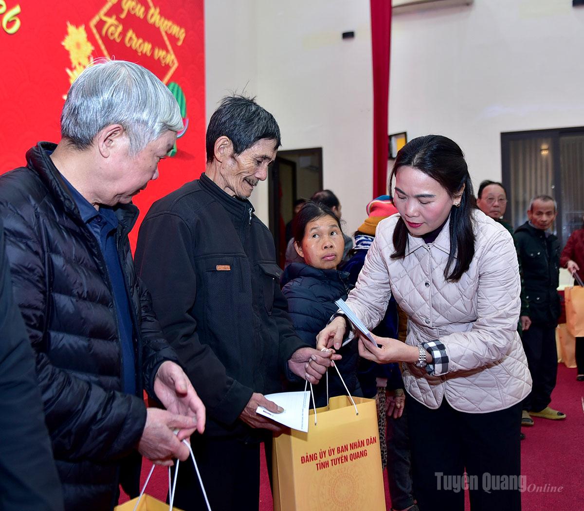 Phó Bí thư Thường trực chuyên trách Đảng ủy UBND tỉnh Nông Thị Bích Huệ trao tặng quà Tết tại xã Hàm Yên
